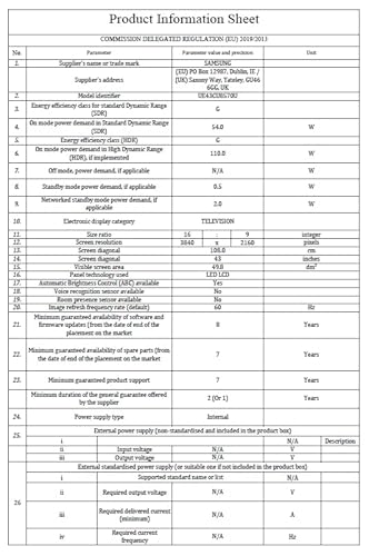 - Contenuto: 1x Samsung Smart TV 43” Serie Q60C, QLED 4K, Classe di efficienza energetica F, Include telecomando SolarCell, cavo di alimentazione e manuale di istruzioni, Dimensioni con base (LxAxP): 96,55 x 59,81 x 18,1 cm, Peso con base: 8,6 kg, Colore: Black